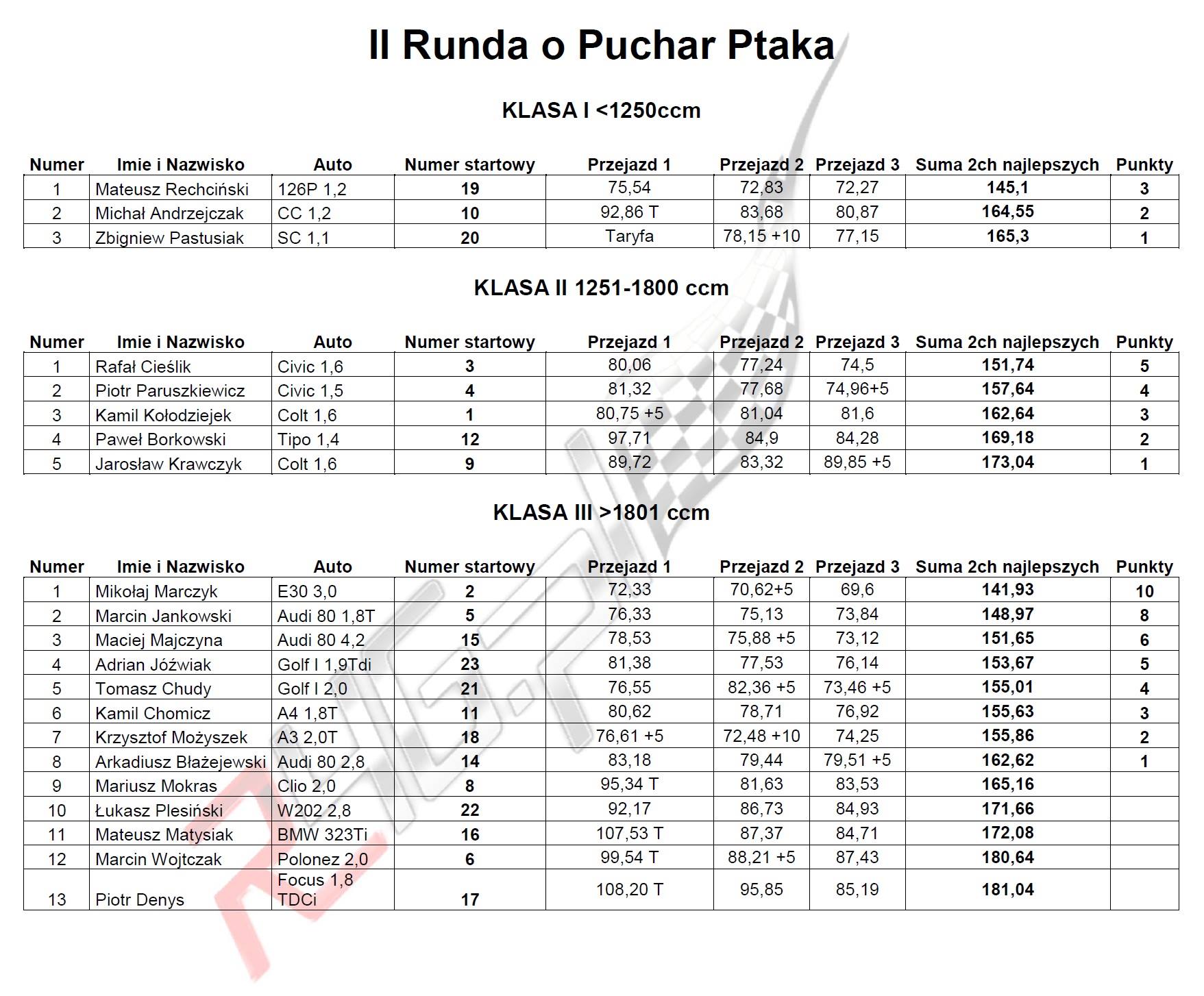 Ponownie dziękujemy wszystkim zawodnikom za wspaniałą rywalizację tym razem podczas II Rundy o Puchar Ptaka.