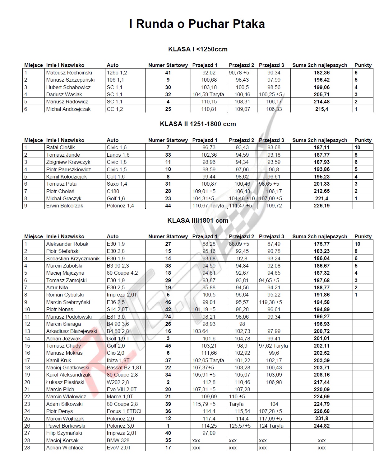 I Eliminacja Pucharu KZK Klubu R46 już za nami! Dziękujemy raz jeszcze wszystkim za przybycie. Poniżej publikujemy wyniki w klasyfikacji generalnej i w poszczególnych klasach.